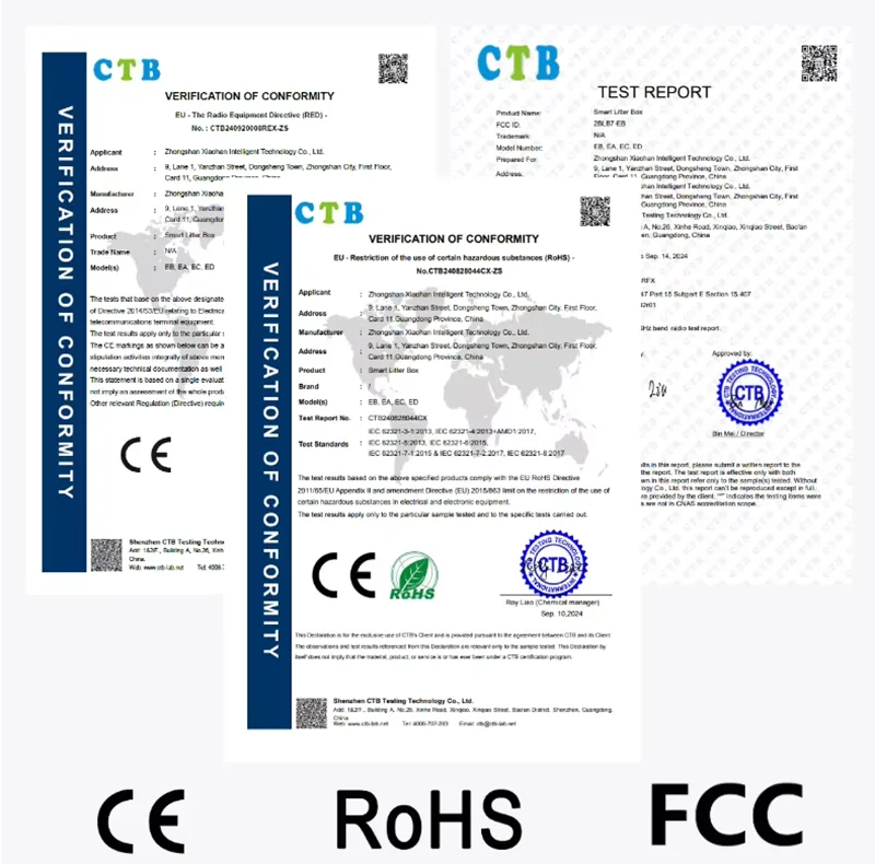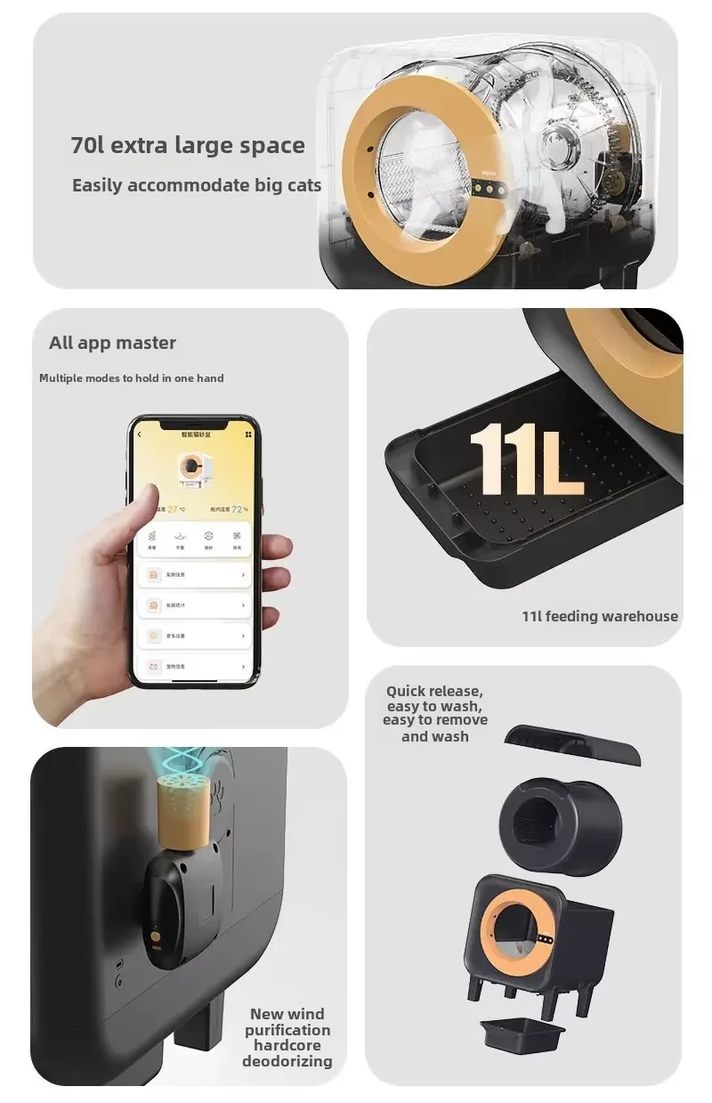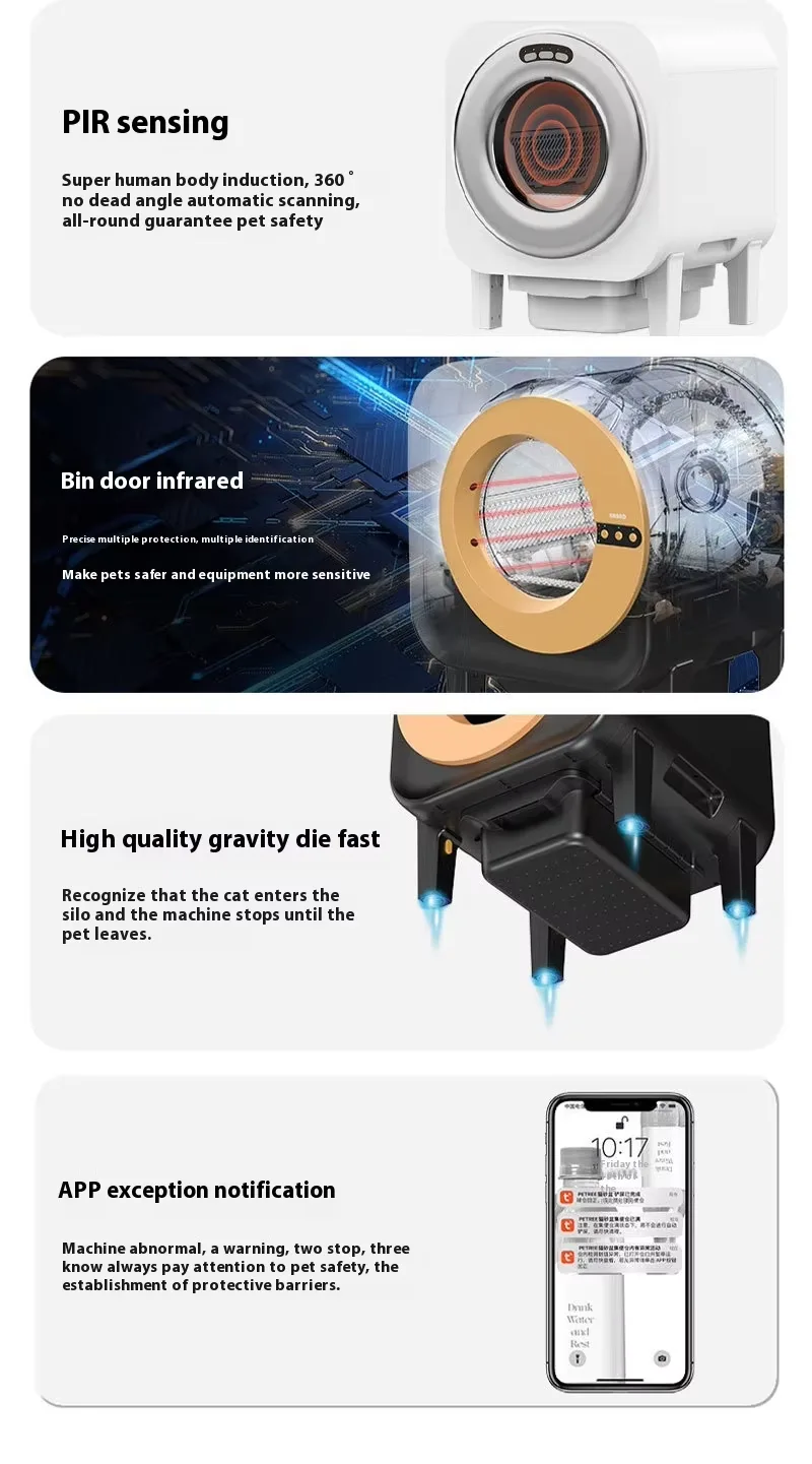 Protezione di sicurezza multipla, più sensori all'interno dell'apparecchiatura lavorano insieme per monitorare lo stato dell'apparecchiatura in ogni momento, offrendo ai gatti una sicurezza più completa